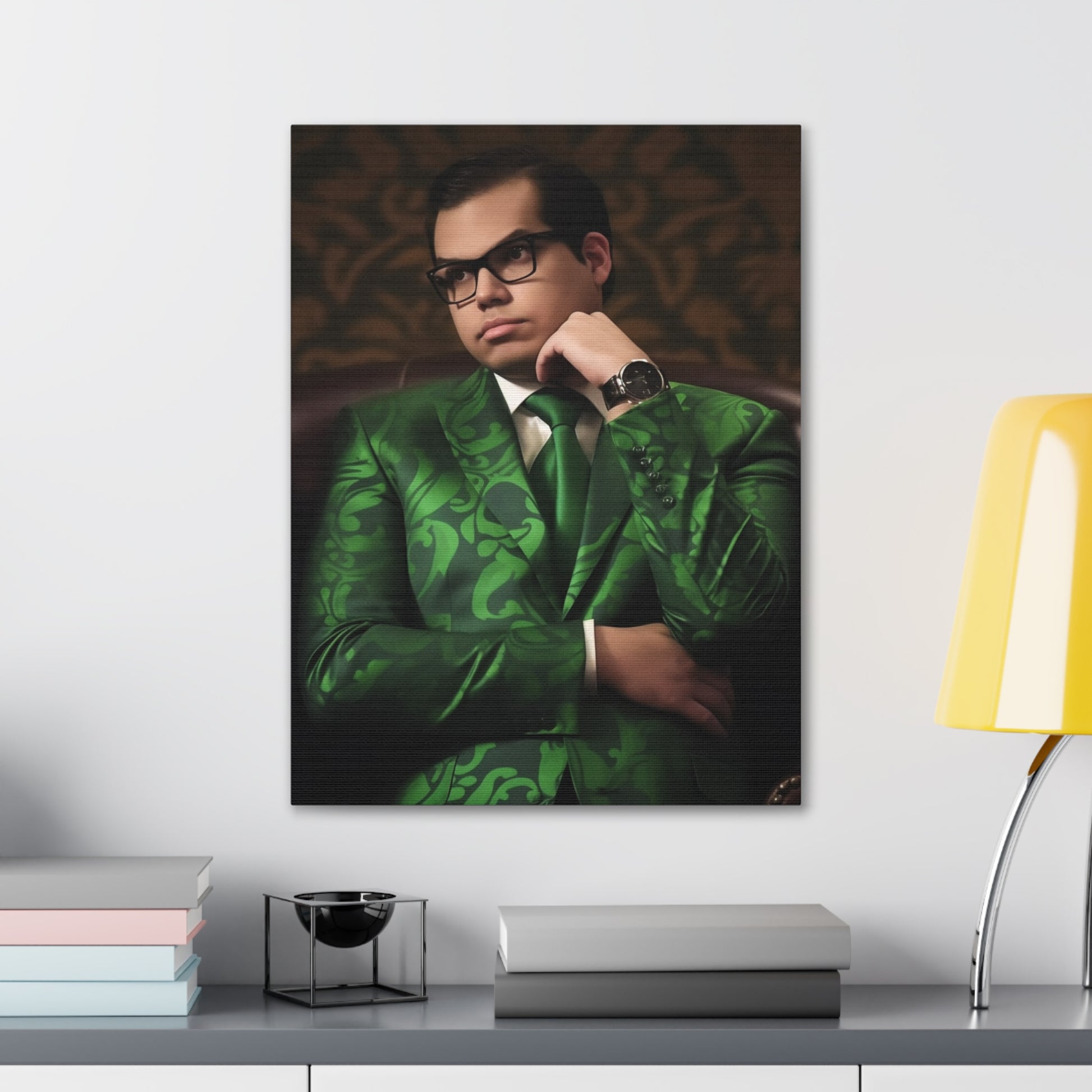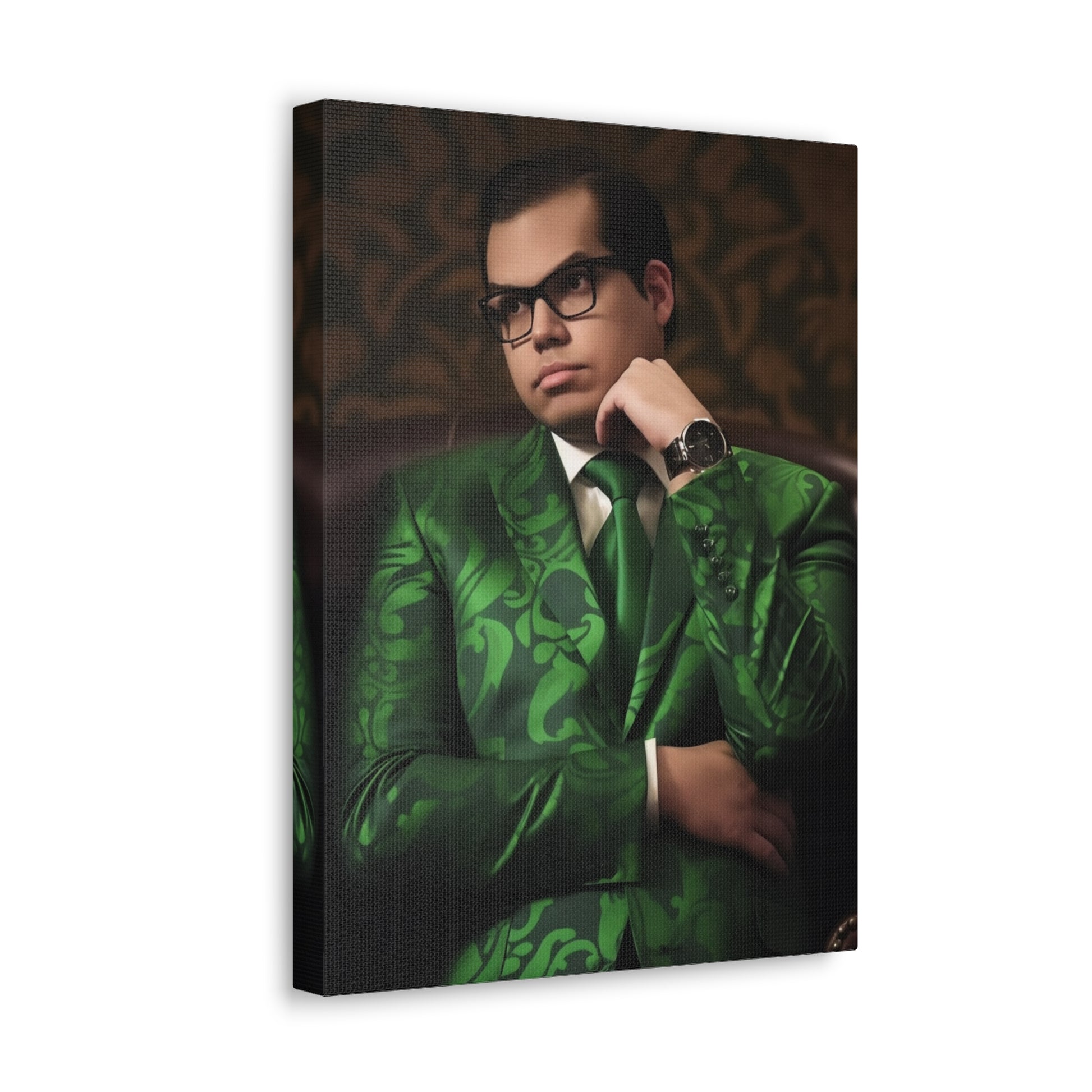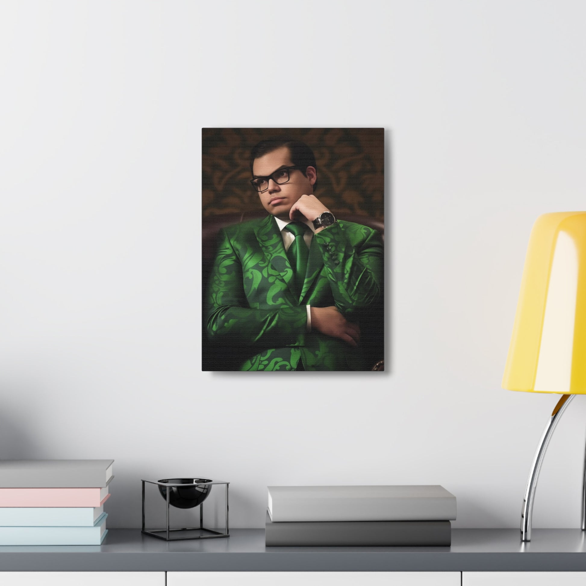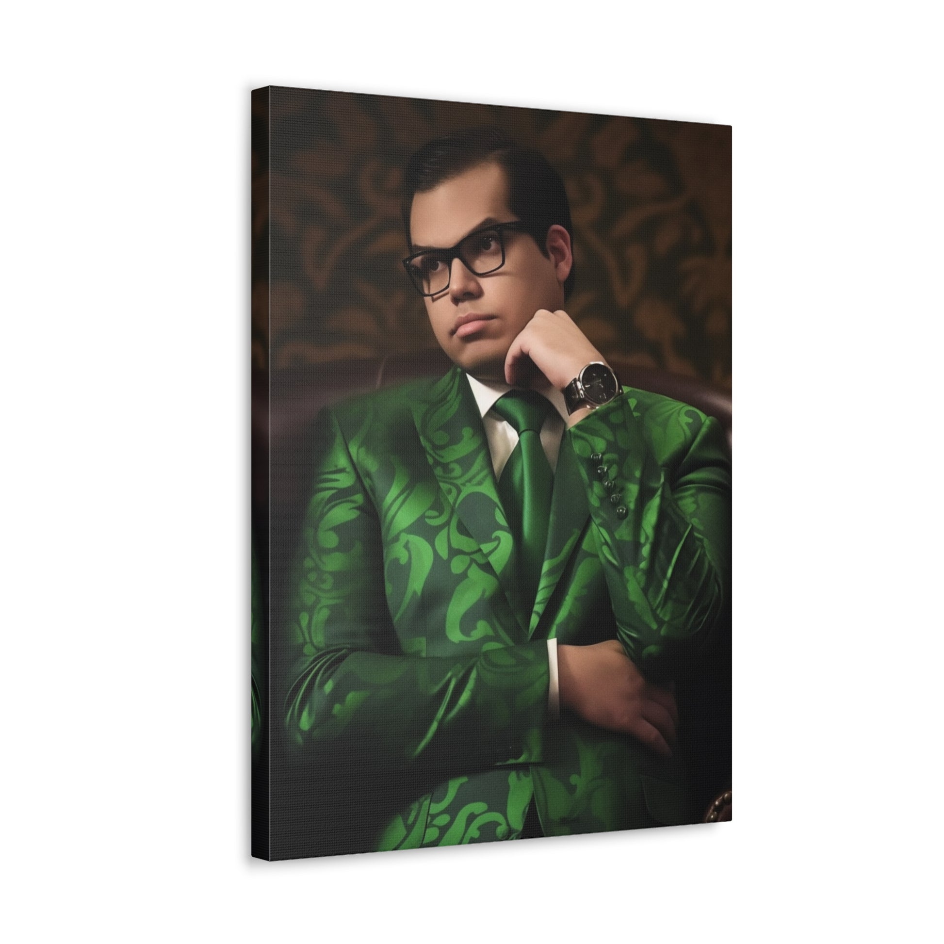Delve into the enigma of political truth with our AI-crafted canvas artwork, "Cryptic Candidacy: The Riddler on the Hill." This captivating piece marries the elusive narrative of Congressman George Santos with the puzzling charisma of DC Comics' The Riddler.