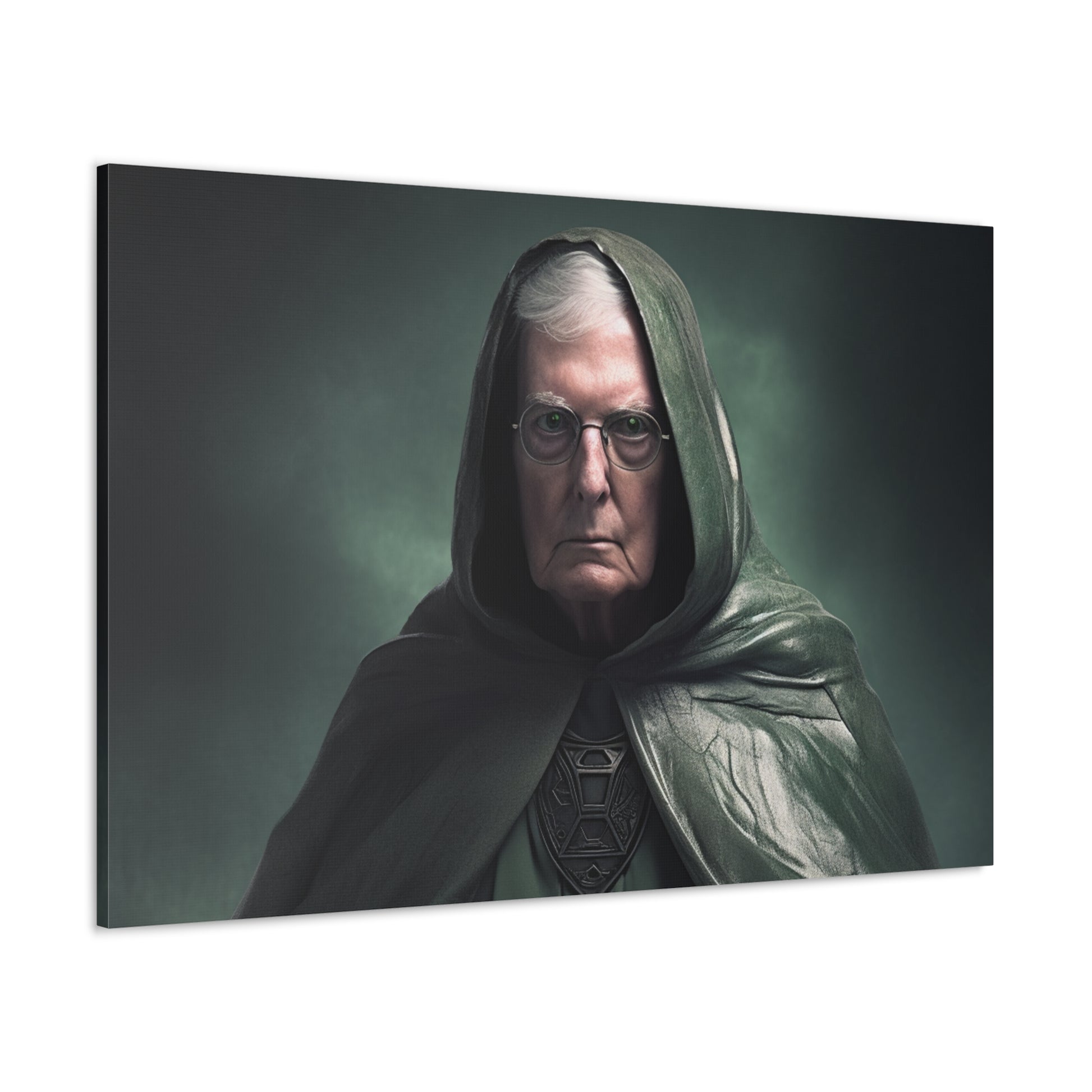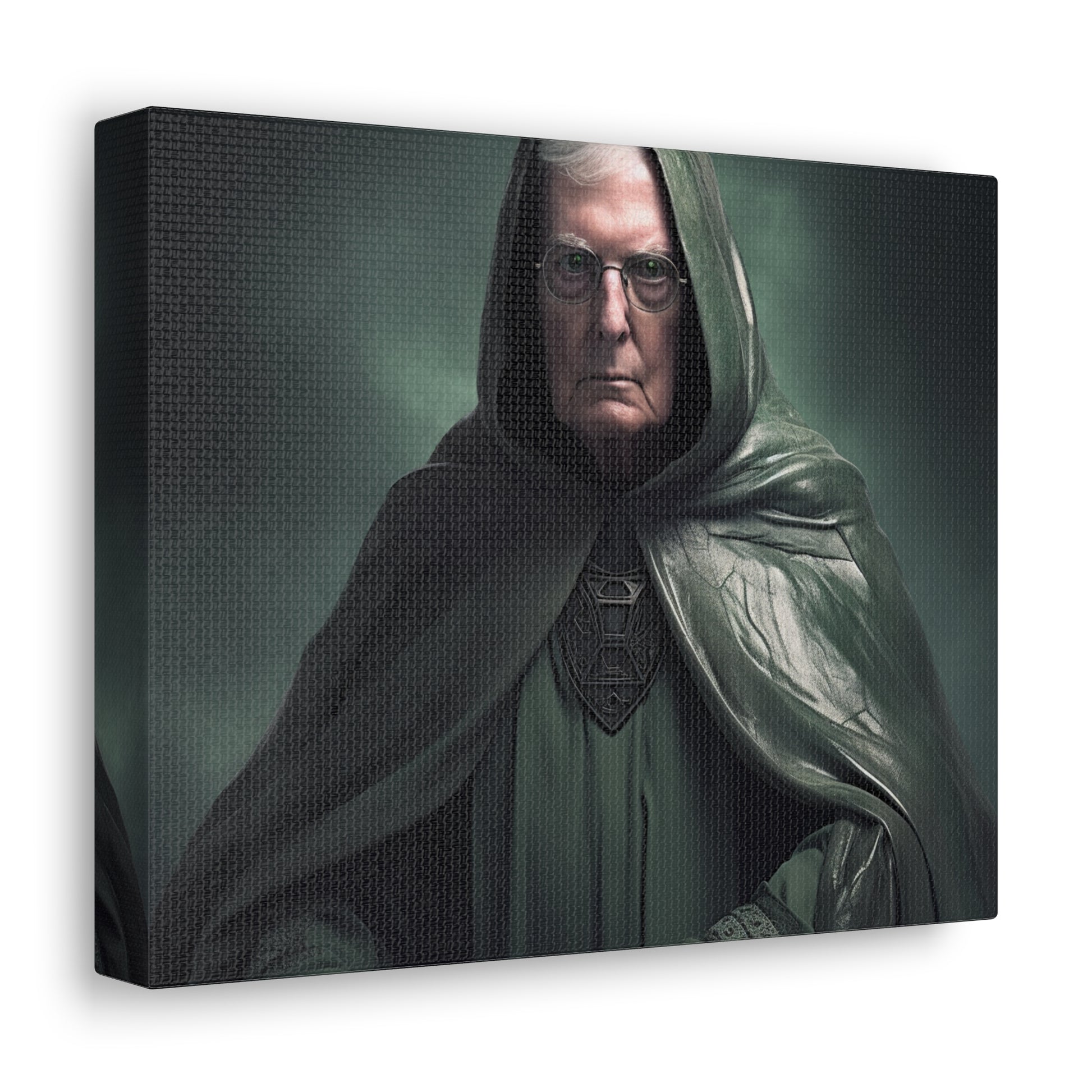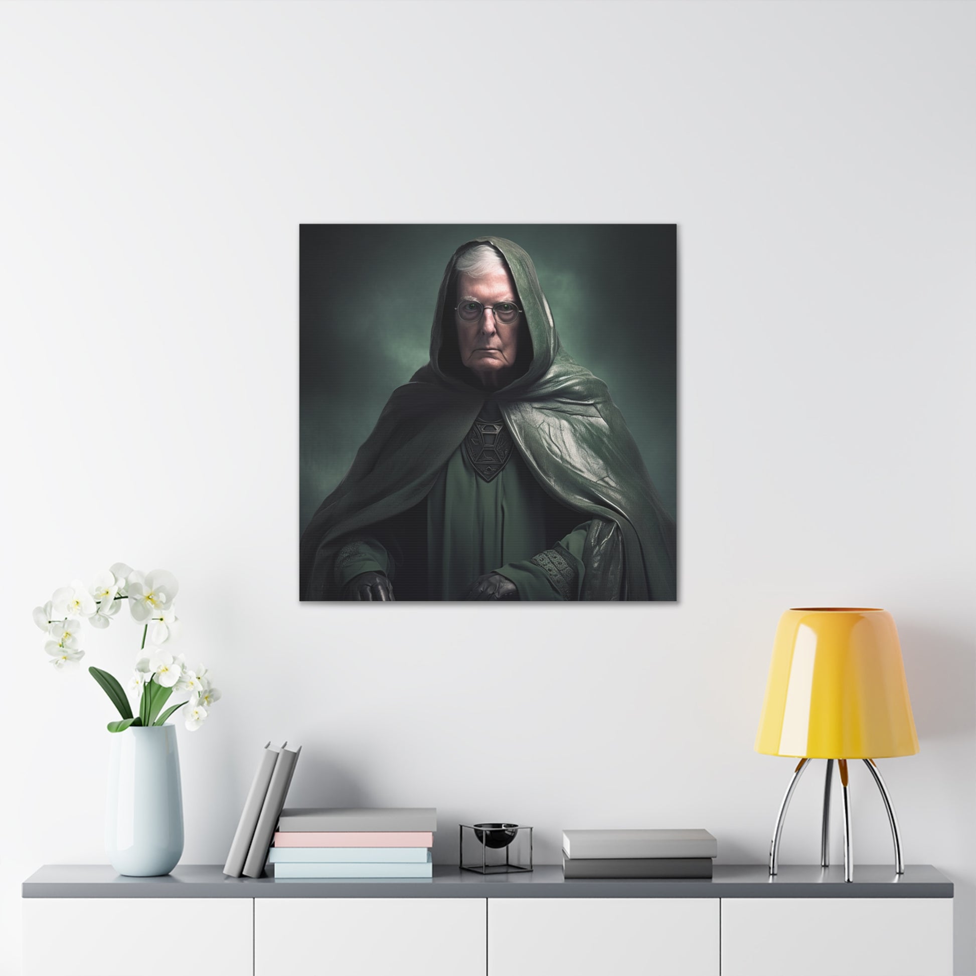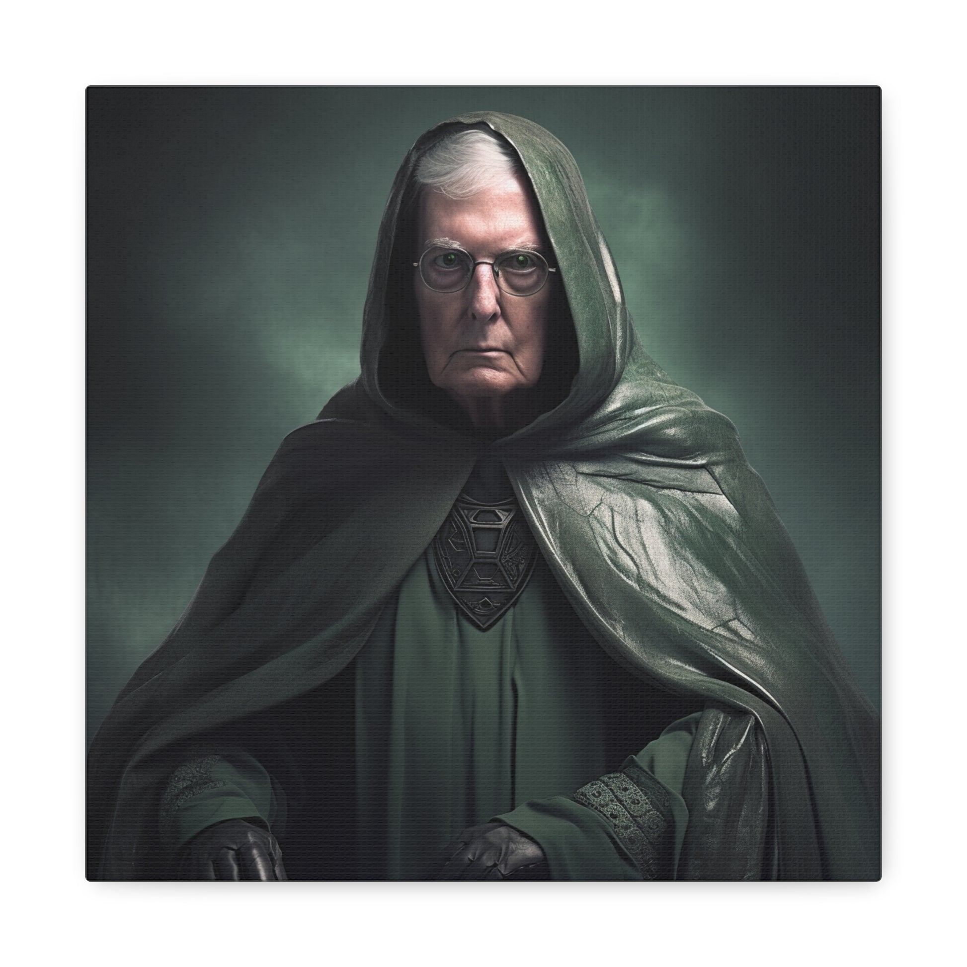 Immerse yourself in a world of power and strategy with our AI-crafted canvas artwork, "Iron Will: The Architect of Ambition." This compelling piece intertwines the calculated machinations of Mitch McConnell with the ironclad resolve of Marvel's Doctor Doom.