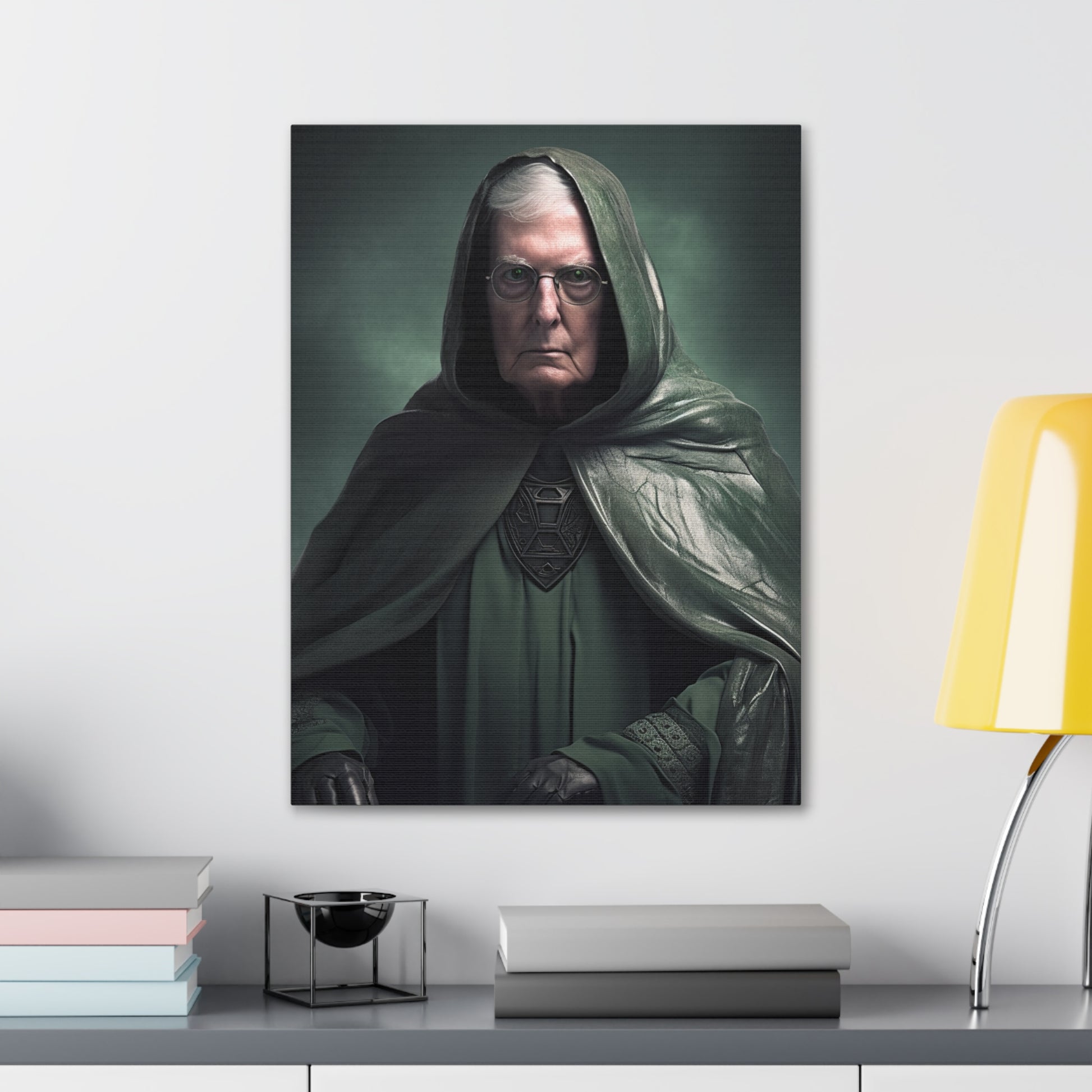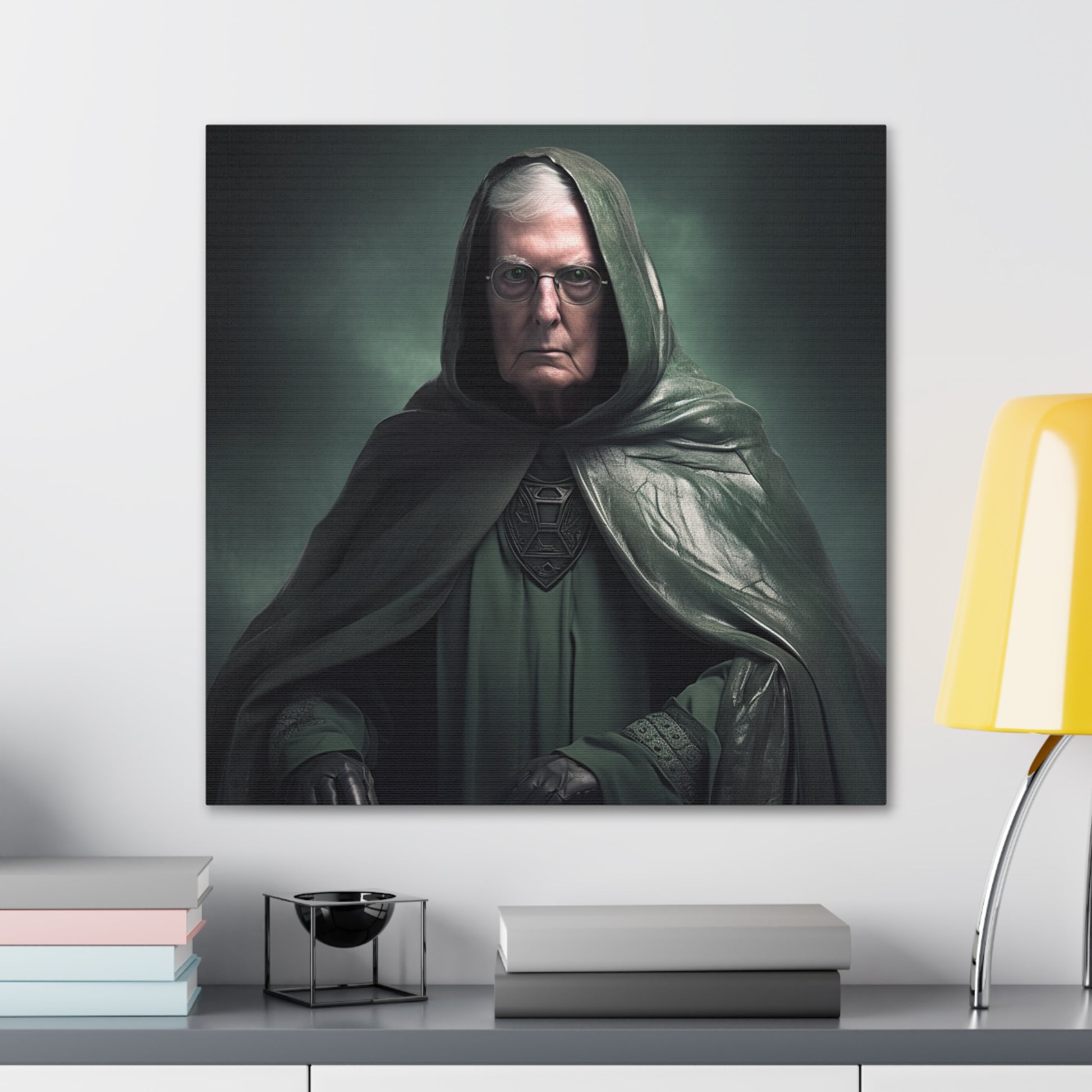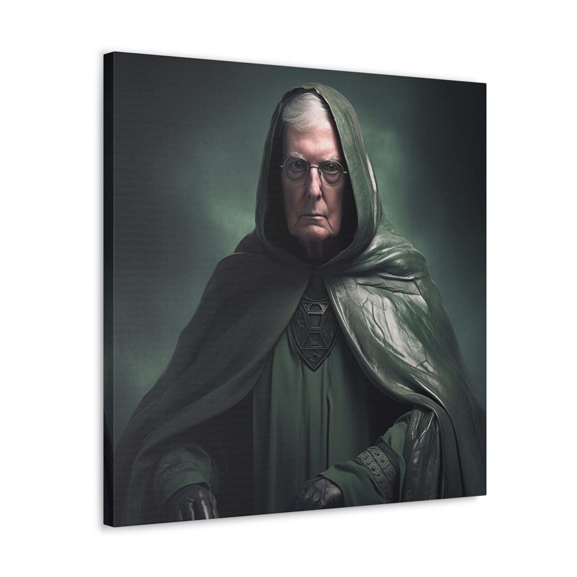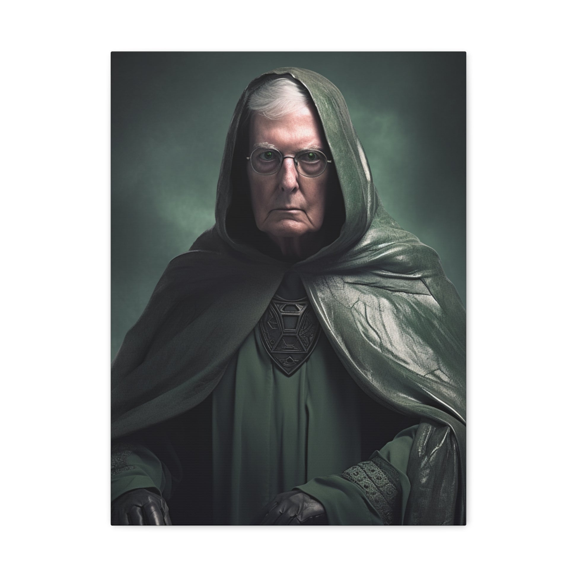 Immerse yourself in a world of power and strategy with our AI-crafted canvas artwork, "Iron Will: The Architect of Ambition." This compelling piece intertwines the calculated machinations of Mitch McConnell with the ironclad resolve of Marvel's Doctor Doom.