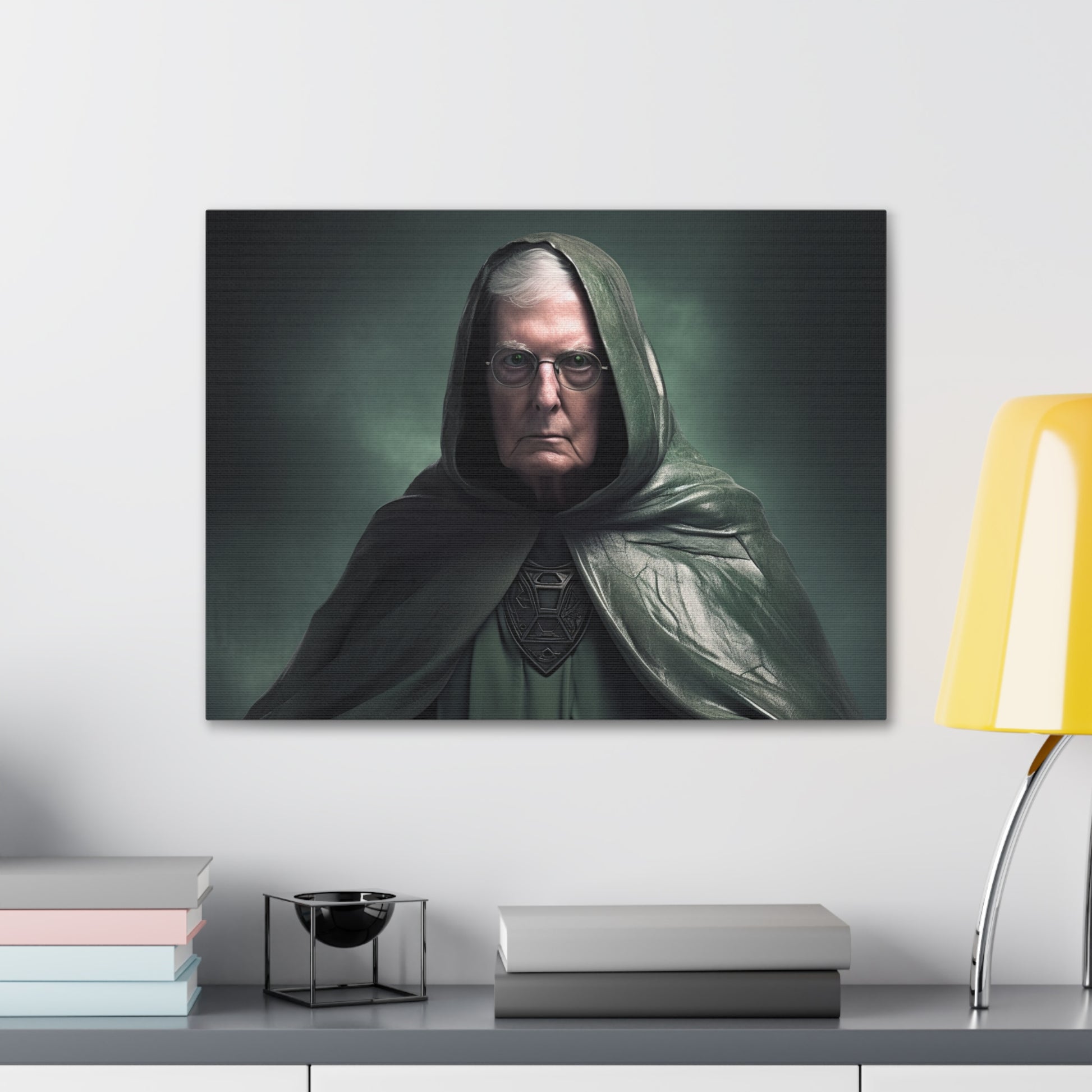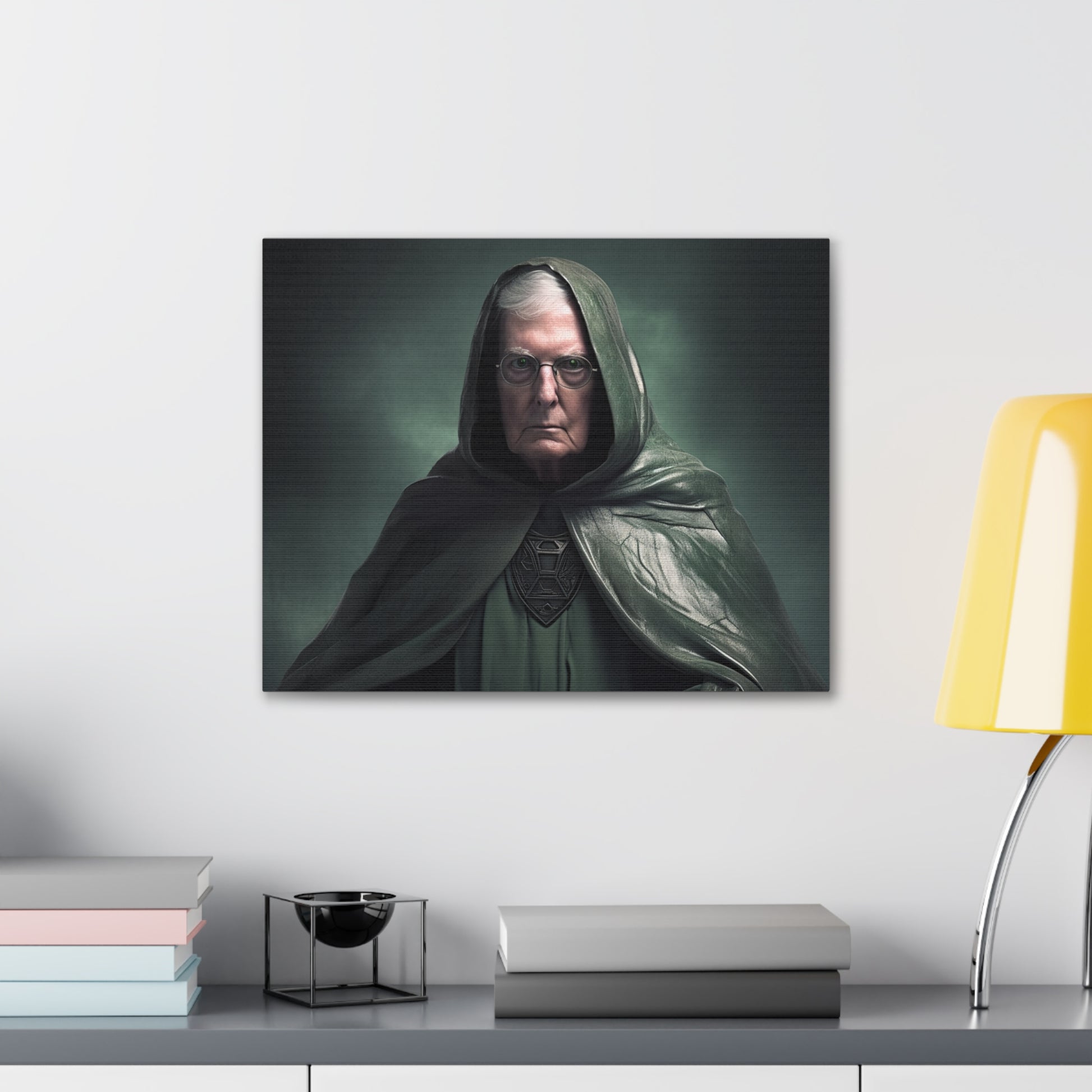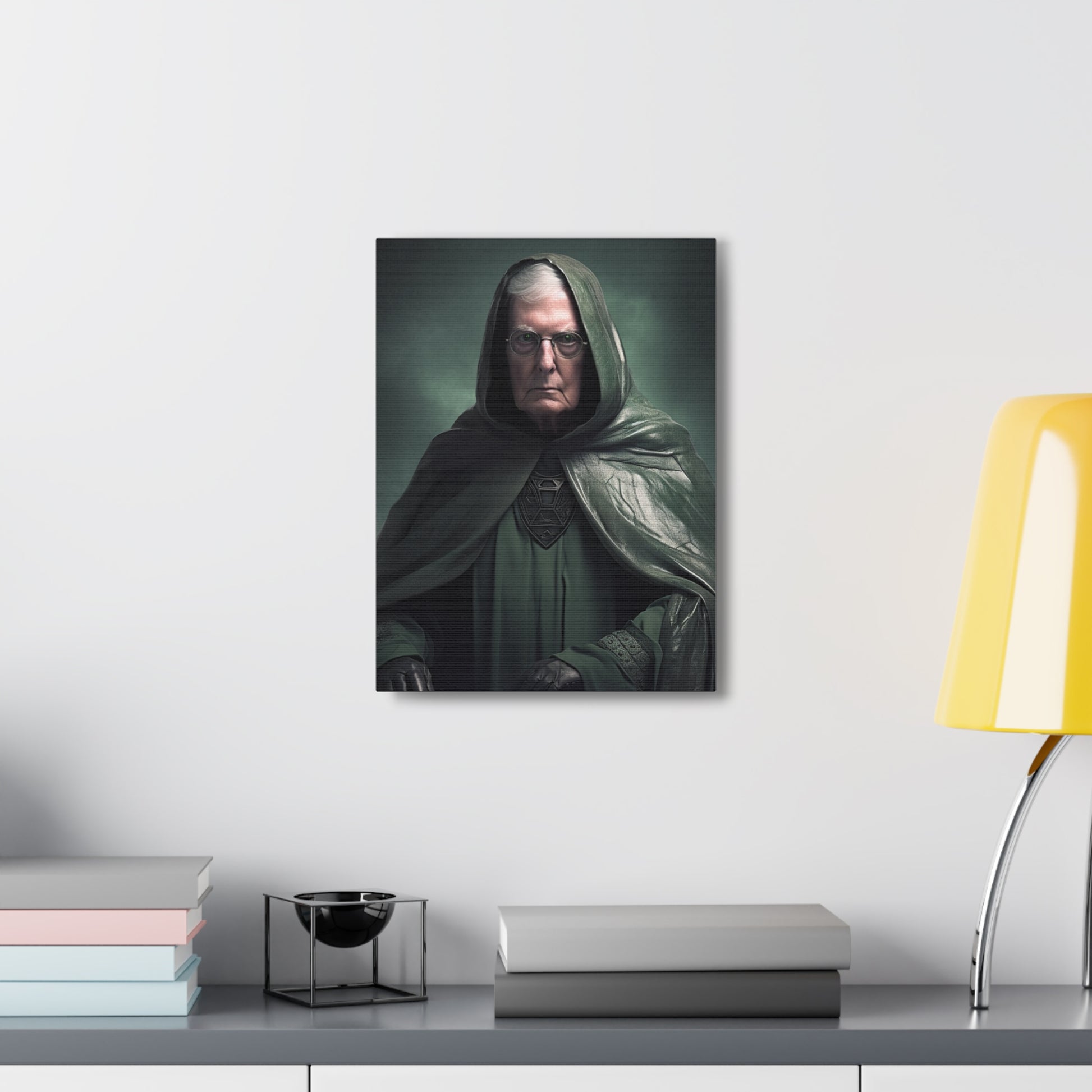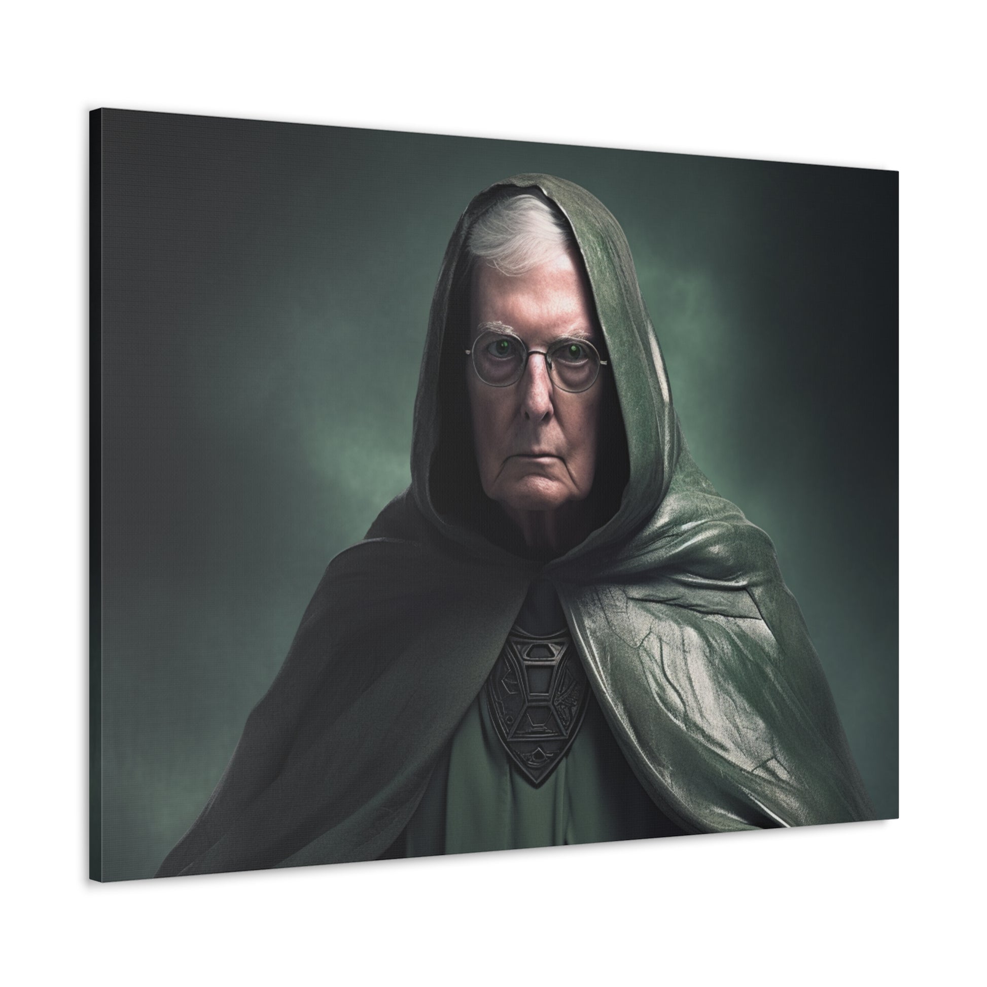 Immerse yourself in a world of power and strategy with our AI-crafted canvas artwork, "Iron Will: The Architect of Ambition." This compelling piece intertwines the calculated machinations of Mitch McConnell with the ironclad resolve of Marvel's Doctor Doom.