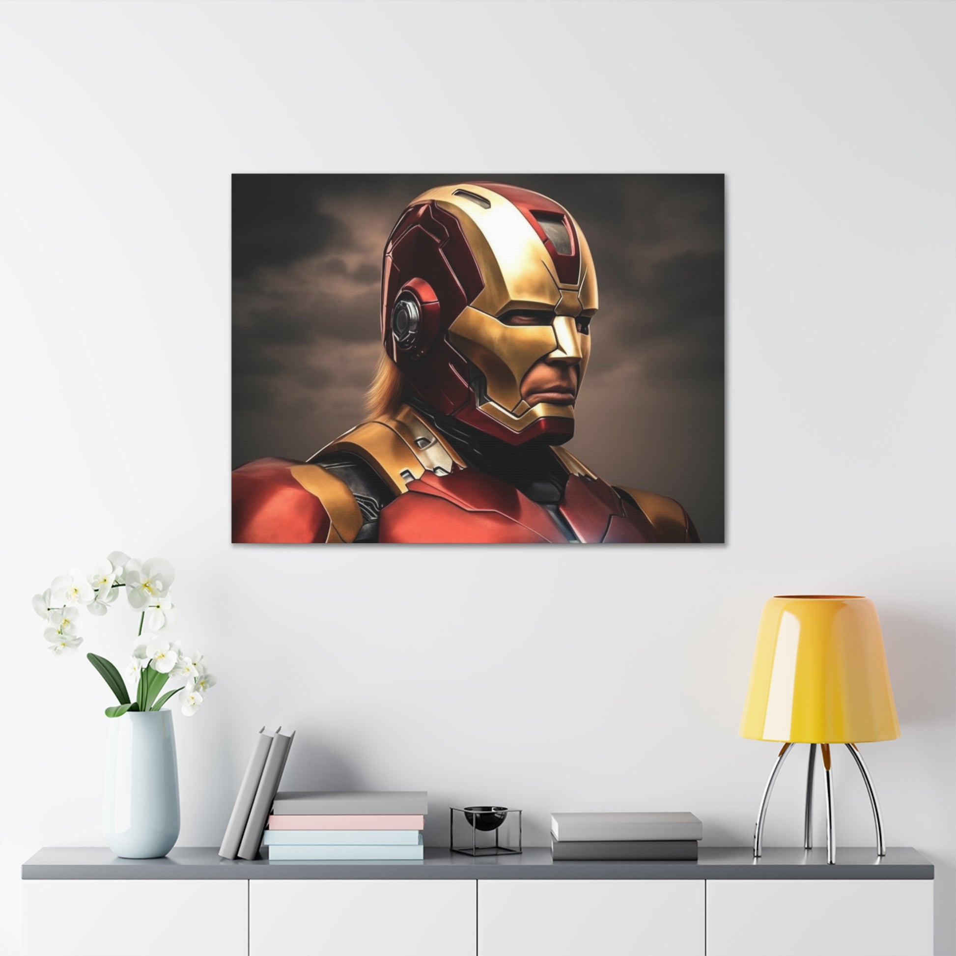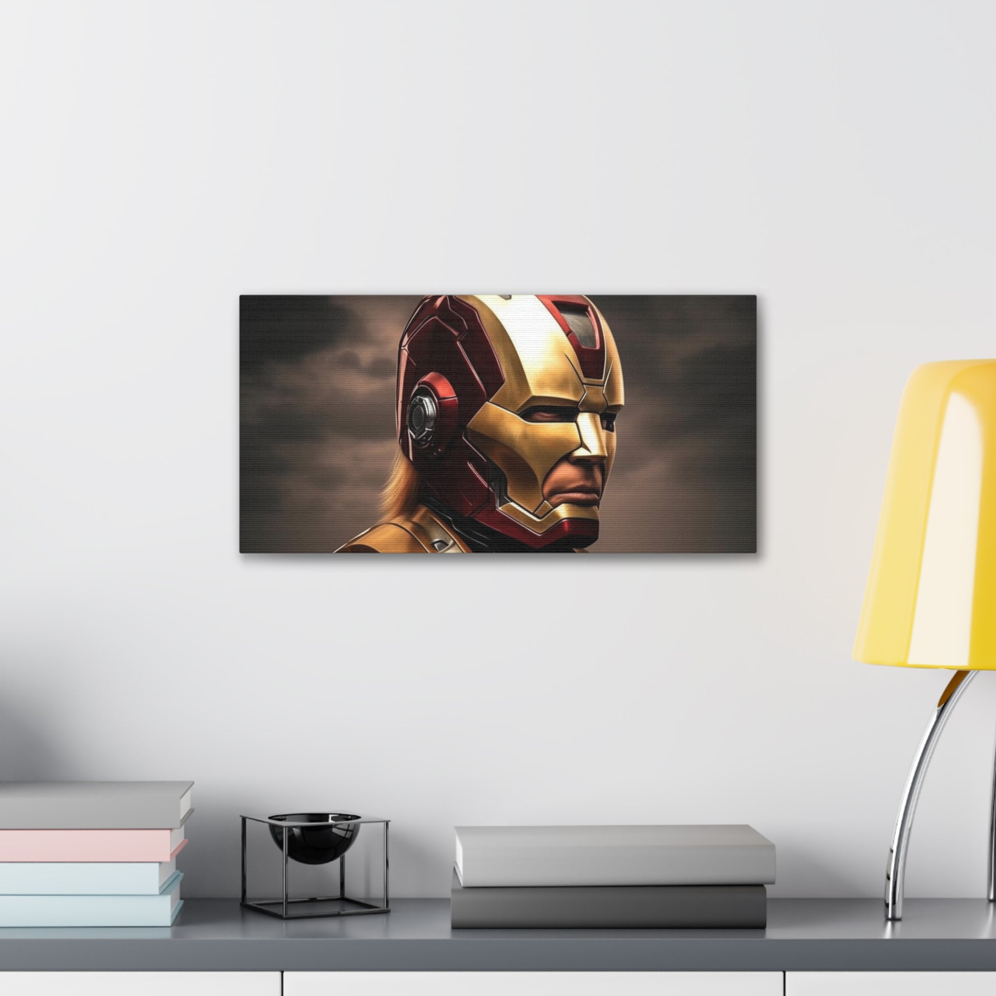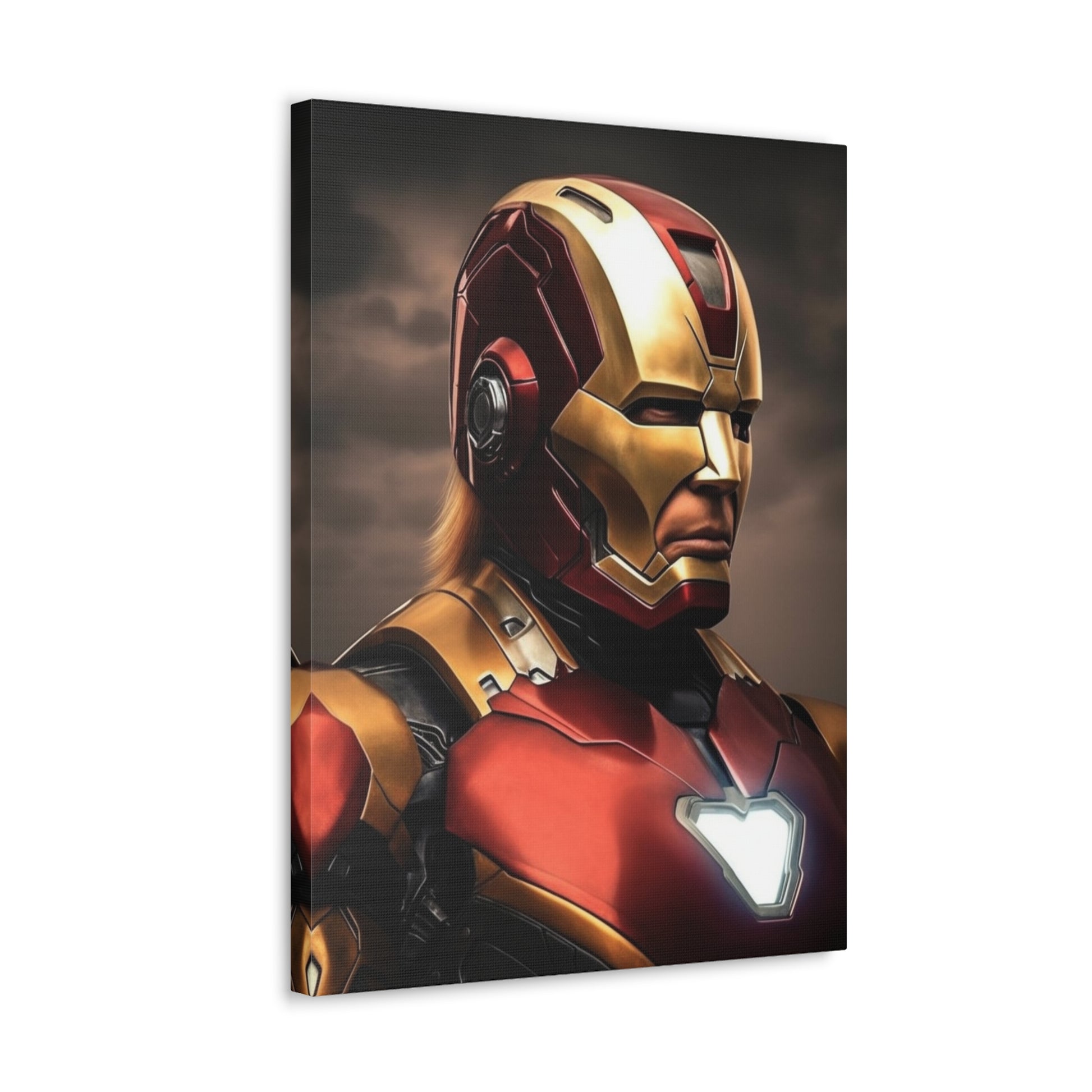 Are you in the market for a conversation piece that merges pop culture, politics, and a dash of irreverence? Look no further than "Stark Reflections: The Iron Mogul," a masterpiece of AI-generated canvas art. This stunning piece daringly captures the intriguing juxtaposition of Donald Trump's real-world persona and the fictional, billionaire superhero Tony Stark, AKA Iron Man.