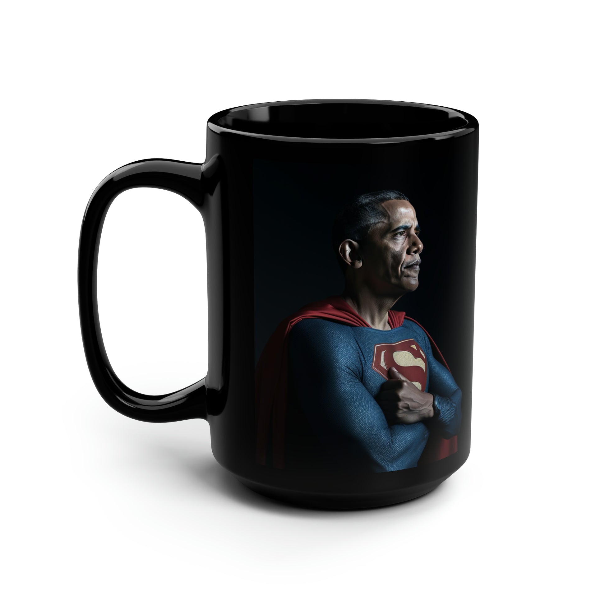 Super-Obama: The Man of Hope Black Mug, 15oz